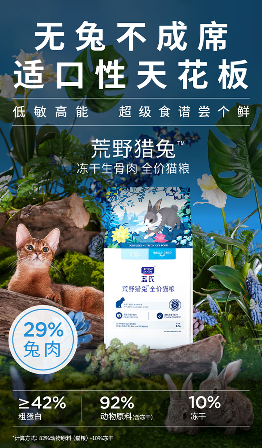 藍氏明星產品“獵鳥乳鴿均衡營養(yǎng)全價貓糧”首創(chuàng)乳鴿配方添加17%鮮乳鴿,獨特甜甜圈夾心顆粒工藝,為同質化貓糧市場增加更多可能性!自2021年上市全網銷量超500萬包,藍氏乳鴿糧也是國家飼料博物館收錄的首款貓糧,曾3次蟬聯天貓貓糧榜單TOP1,該產品與“老爸抽檢”合作,從產品原料、生產過程和產品品質對產品進行多項認證檢測,為藍氏構建全方位立體化的產品價值承諾!