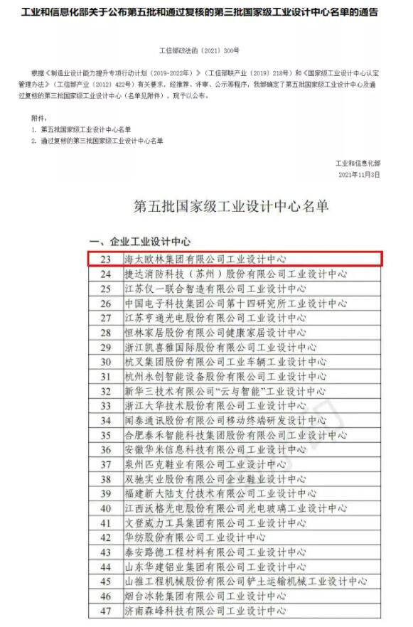 國家級(jí)!海太歐林集團(tuán)喜提“國家級(jí)工業(yè)設(shè)計(jì)中心”