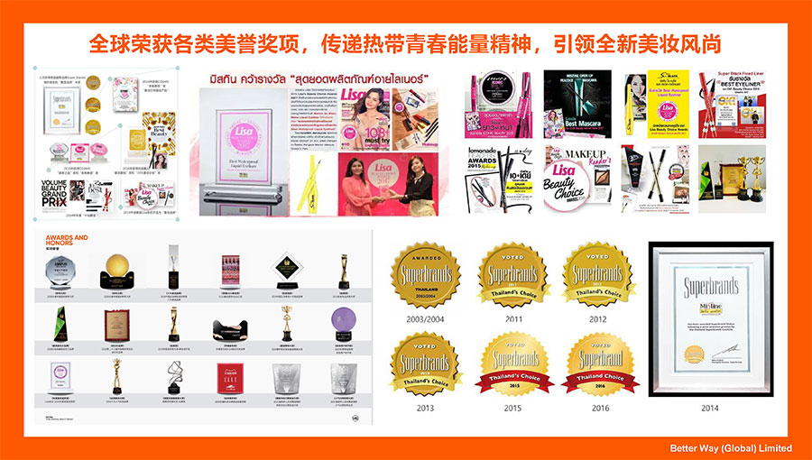 近年來,Mistine蜜絲婷更是先后榮獲ELLE雜志“THAILAND BEAUTY AWARDS”大獎、中國化妝品大會藍(lán)玫獎「2022年度競爭力品牌」、天貓金妝獎「年度防曬獎」、快手電商「年度甄選好物獎」、抖音電商「年度好物獎小IQF國際品質(zhì)節(jié)暨消費領(lǐng)導(dǎo)力峰會杰出消費影響力品牌」、CAQI中國質(zhì)量網(wǎng)「全國美妝行業(yè)質(zhì)量領(lǐng)先品牌」、2023美伊大賞TOP·護(hù)膚類防曬大獎、2023美伊大賞TOP·彩妝類底妝大獎等榮譽。