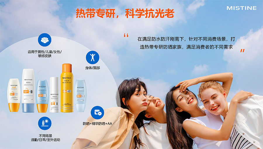 未來,Mistine蜜絲婷將繼續(xù)在防曬品類中大步闊行,專注產(chǎn)品研發(fā)和創(chuàng)新。在深挖“防曬”品類的同時,Mistine蜜絲婷也將不斷拓展美妝新品類,以更多創(chuàng)新好用、時尚的美妝產(chǎn)品,進(jìn)一步搶占美妝賽道的市場份額,成為全球美妝市場的領(lǐng)軍品牌。