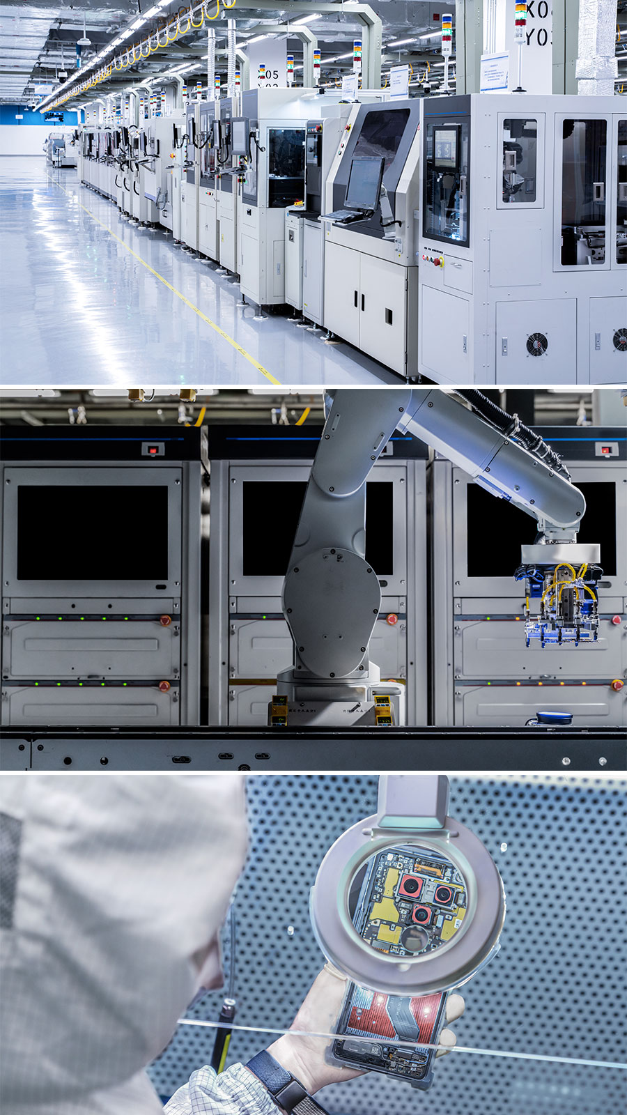 從源頭保證質(zhì)量:一臺(tái)手機(jī)由幾千顆物料組成,來(lái)料投入生產(chǎn)前經(jīng)200+嚴(yán)苛檢測(cè)。
