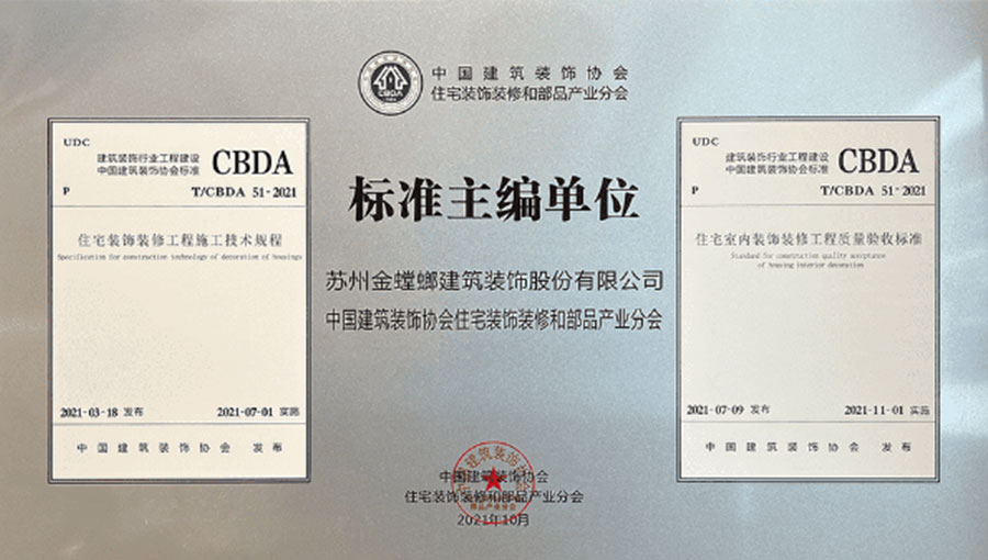 2021年,作為核心主編及實施單位參與了CBDA《住宅裝飾裝修工程施工技術(shù)規(guī)程》和CBDA《住宅室內(nèi)裝飾裝修工程施工質(zhì)量驗收標準》的制訂工作,以高標準嚴要求完成住宅裝飾行業(yè)第一部規(guī)范標準制定。