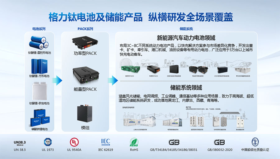 以完善的研發(fā)體系,公司加快技術(shù)創(chuàng)新與產(chǎn)業(yè)升級(jí)的步伐。公司研發(fā)的格力鈦電池安全性長(zhǎng)期領(lǐng)跑行業(yè),憑借具有高安全、大倍率、快充放、耐寬溫、長(zhǎng)壽命等特性,被選為“國(guó)家制造業(yè)單項(xiàng)冠軍產(chǎn)品”,廣泛應(yīng)用于新能源汽車以及工商業(yè)園區(qū)、通訊基站、電網(wǎng)調(diào)頻、軌道交通、風(fēng)光消納、船舶岸電、家庭住宅、軍事科研等儲(chǔ)能領(lǐng)域,具有廣闊的市場(chǎng)前景和應(yīng)用價(jià)值。目前,格力鈦儲(chǔ)能產(chǎn)品已在丹麥、瑞士、芬蘭等全球30多個(gè)國(guó)家和地區(qū)使用,新能源汽車產(chǎn)品在北京、杭州、武漢、成都、青島、哈爾濱、包頭、??诘热?40多座城市運(yùn)營(yíng),12年全球零電池事故安全運(yùn)行。
