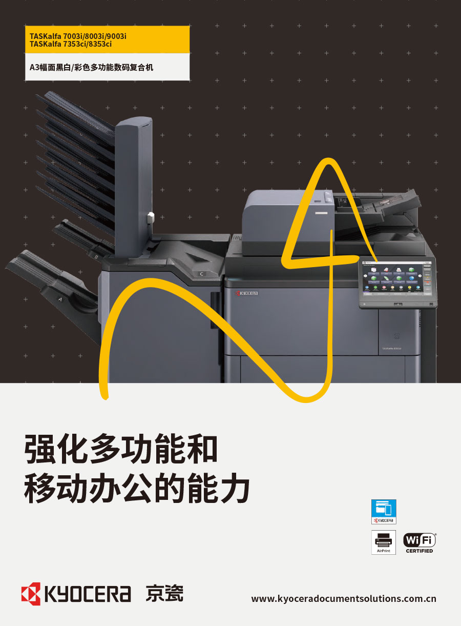 京瓷辦公信息系統(tǒng)(中國(guó))有限公司主要負(fù)責(zé)彩色和黑白數(shù)碼復(fù)合機(jī)、彩色和黑白數(shù)碼激光打印機(jī)、辦公解決方案等系列辦公自動(dòng)化設(shè)備的銷售。我們將一如既往延續(xù)ECOSYS理念,始終站在時(shí)代前沿,以科技服務(wù)社會(huì),堅(jiān)持開(kāi)發(fā)更能滿足時(shí)代需求、更為綠色的新銳產(chǎn)品,使用戶都能夠從中獲得更大的利益。