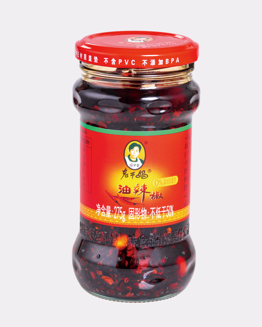 主要產品:老干媽牌油辣椒系列(油辣椒、風味豆豉、香菇、精制牛肉末豆豉、辣三丁、香辣脆、干煸肉絲、風味雞、肉絲豆豉)、油辣子大塊牛肉醬、火鍋底料(糟辣椒/植物油)、香辣醬、下飯菜、拌飯醬、風味水豆豉、紅油腐乳、風味腐乳、香辣菜、糟辣剁椒系列(姜蒜/中辣/微辣)、番茄辣醬