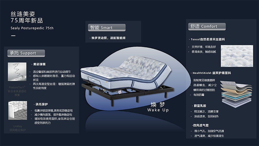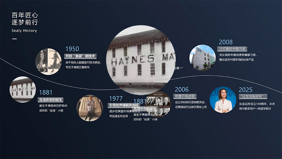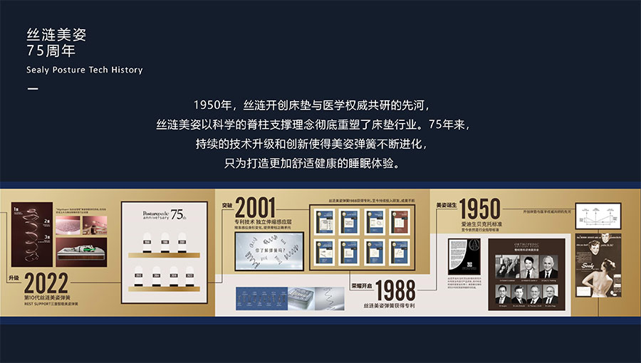 絲漣SEALY1881年誕生于美國,自1885年第一張絲漣床墊問世伊始,便憑借其卓越性能與舒適安睡體驗聲名大噪。1950年,絲漣開創(chuàng)床墊與醫(yī)學(xué)權(quán)威共研的先河,絲漣美姿以科學(xué)的脊柱支撐理念徹底重塑了床墊行業(yè)。75年來,持續(xù)的技術(shù)升級和創(chuàng)新使得美姿彈簧不斷進化,只為打造更加舒適健康的睡眠體驗。