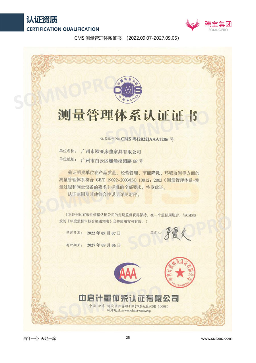 本著高品質(zhì)、高效率、重管理的原則,穗寶已通過(guò)ISO9001質(zhì)量管理體系認(rèn)證證書(shū)、ISO14001環(huán)境管理體系認(rèn)證證書(shū)、ISO45001職業(yè)健康安全管理體系認(rèn)證證書(shū)、中國(guó)環(huán)境標(biāo)志產(chǎn)品認(rèn)證證書(shū)、家居綠色環(huán)保領(lǐng)跑品牌、綠色正品家居品牌、企業(yè)標(biāo)準(zhǔn)“綠色領(lǐng)跑者”證書(shū)、CMS測(cè)量管理體系證書(shū)、CMS測(cè)量管理體系證書(shū)附件、廣東省“守信用重合同”企業(yè)、廣州歐亞-納稅信用A級(jí)納稅人(連續(xù)5年:2018-2022)、2024年中國(guó)500最具價(jià)值品牌,品牌價(jià)值高達(dá)302.89億元、廣東高價(jià)值商標(biāo)品牌(穗寶)、廣東省重點(diǎn)商標(biāo)保護(hù)名錄納入證明、廣州市勞動(dòng)關(guān)系和諧企業(yè)AA級(jí)。穗寶自創(chuàng)立以來(lái),不斷致力于新產(chǎn)品的設(shè)計(jì)與研發(fā),多次在國(guó)內(nèi)家具展會(huì)屢獲獎(jiǎng)項(xiàng),產(chǎn)品暢銷國(guó)內(nèi)外,深受客戶一致好評(píng)。