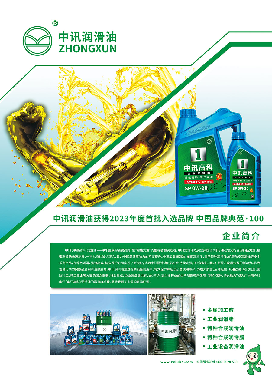 中華民族的新銳品牌,是“綠色潤滑”的倡導(dǎo)者和實踐者。中訊潤滑油以實業(yè)興國的情懷,通過領(lǐng)先行業(yè)的科技力量、精密高效的先進(jìn)制程、一言九鼎的誠信理念,致力中國品牌影響力的不斷提升。中訊工業(yè)潤滑油、車用潤滑油、國防特種潤滑油、航天航空潤滑油等多個系列產(chǎn)品,在綠色潤滑、強(qiáng)勁高效、持久保護(hù)方面實現(xiàn)了新突破,成為中訊潤滑油在行業(yè)中持續(xù)走強(qiáng),不斷超越自我,不斷提升發(fā)展指數(shù)的新動力。作為性價比高的民族品牌潤滑油供應(yīng)商,中訊潤滑油通過提高設(shè)備使用率、有效保護(hù)并延長設(shè)備使用壽命,為航天航空、遠(yuǎn)洋運(yùn)輸、公路鐵路、現(xiàn)代制造、國防科工、精工重企等方面的國之重器、行業(yè)重點(diǎn)、企業(yè)裝備提供有力的呵護(hù),更為多行業(yè)的生產(chǎn)制造帶來保障。“持久保護(hù),持久動力”成為廣大用戶對中訊(中訊高科)潤滑油的最直接感受,品牌受到了市場的普遍好評。