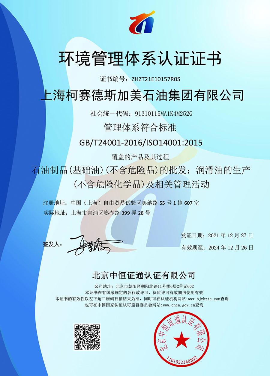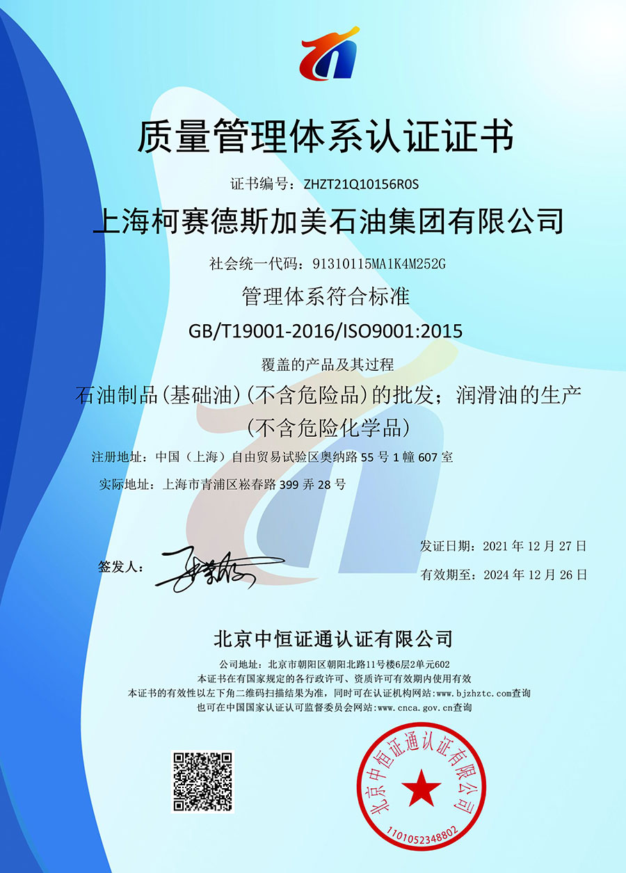 柯賽德斯集團(tuán)公司統(tǒng)一遵循嚴(yán)格的質(zhì)量保證體系,先后通過了武器裝備質(zhì)量管理體系認(rèn)證GJB9001C-2017、ISO/TS16949、IS09001質(zhì)量體系認(rèn)證、1S014001環(huán)境體系認(rèn)證及ISO45001:2018職業(yè)健康安全管理體系認(rèn)證。隨著業(yè)務(wù)領(lǐng)域的不斷擴(kuò)展,目前柯賽德斯集團(tuán)公司先后與多家世界能源、化工方面的巨頭建立了產(chǎn)品服務(wù)、供應(yīng)保障、技術(shù)合作、技術(shù)特別支持單位等方面的戰(zhàn)略合作關(guān)系。今天,柯賽德斯集團(tuán)公司旗下管理著三大潤滑油品牌,實現(xiàn)了經(jīng)營上的多元化戰(zhàn)略格局。