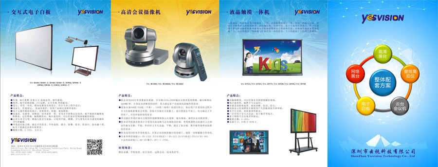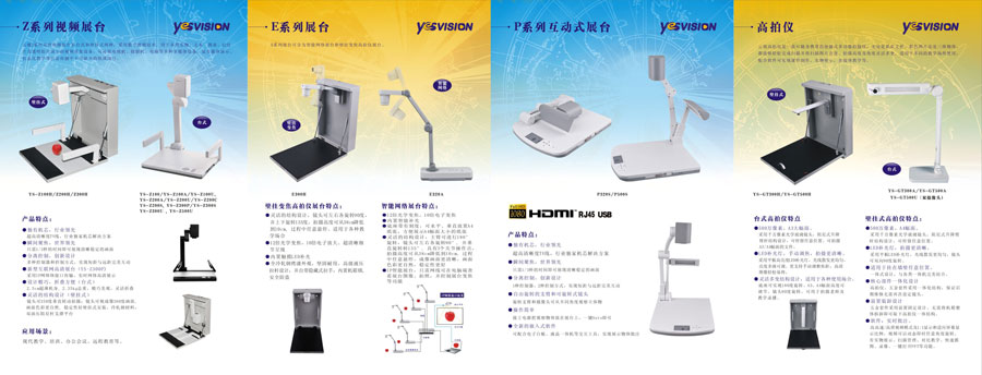 主要產(chǎn)品:云視牌高清實(shí)物展臺(tái)、高拍儀、交互式電子白板、智能終端一體機(jī)、高清攝像機(jī)、音箱