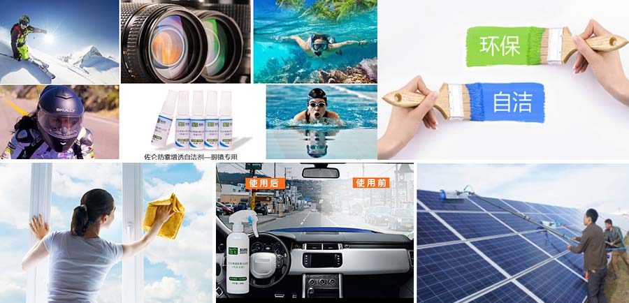 自潔領(lǐng)域 主要包含光觸媒超親水玻璃自潔液,包括鏡片玻璃自潔液、汽車玻璃自潔液、家用玻璃自潔液、光伏玻璃自潔液、建筑玻璃自潔液、抗菌凈化自潔涂料等,佐侖人力求為社會(huì)營(yíng)造健康、綠色的生存環(huán)境,讓天更藍(lán),水更清,空氣更清新!