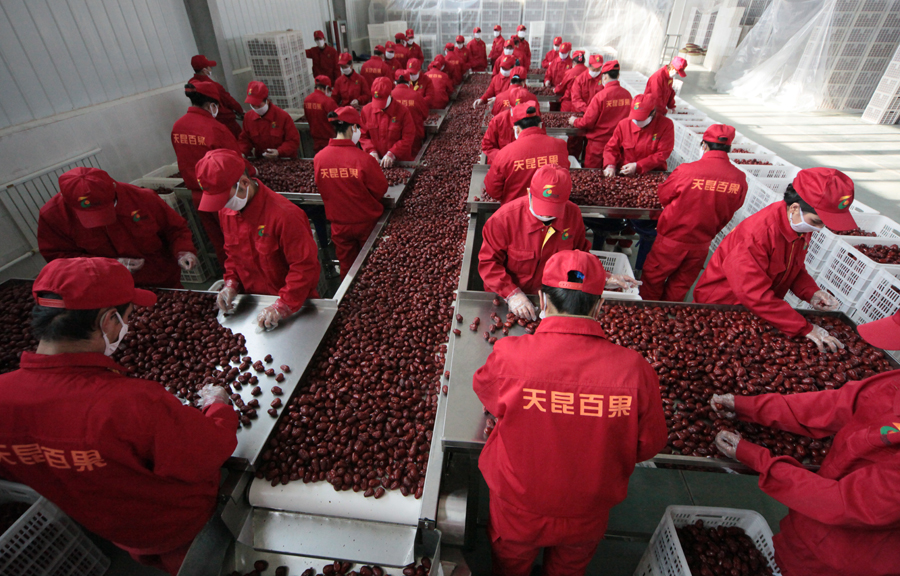 果業(yè):新疆天昆百果果業(yè)股份有限公司成立于2010年7月,公司注冊(cè)資金3000萬(wàn)元,主要經(jīng)營(yíng)水果制品加工、棗酒、棗醋制造。公司以“強(qiáng)企業(yè)、優(yōu)基地、重特色、創(chuàng)品牌”為思路,以建立“企業(yè)增效、員工增收、和諧穩(wěn)定和建設(shè)優(yōu)質(zhì)特色果品基地”為目標(biāo),實(shí)施標(biāo)準(zhǔn)化生產(chǎn),發(fā)展區(qū)域優(yōu)勢(shì),促進(jìn)企業(yè)持續(xù)健康發(fā)展。