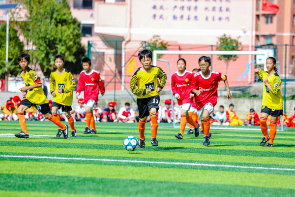 活動現(xiàn)場還舉辦了在安踏運動場的第一場足球賽。據(jù)了解,楓香九校是足球特色校,但學校一直缺少專業(yè)足球場,此次安踏足球運動場的捐建將改善學校的運動環(huán)境,推動當?shù)刈闱蜻\動發(fā)展。此外,在今年8月開展的安踏體育課教師培訓(xùn)貴州站中,石阡縣派出了33名鄉(xiāng)村體育教師參與培訓(xùn)。安踏集團攜手合作伙伴和兒童青少年體育專家共同開發(fā)安踏體育課,課程旨在通過培訓(xùn)一線體育教師,提升專業(yè)體育教育水平,激發(fā)體育教師的教學熱情,從而達到全方位推動深化體教融合,改善體育教育質(zhì)量,促進青少年全面健康成長的目的。