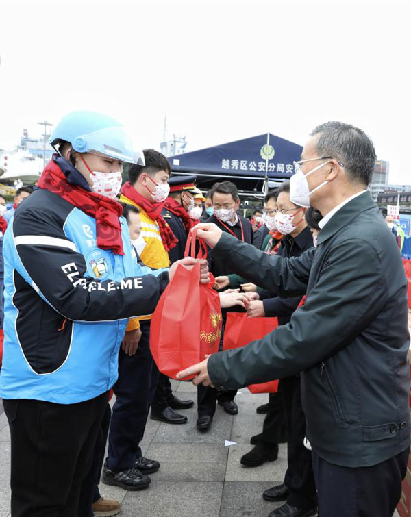 省人大常委會黨組成員、省總工會主席呂業(yè)升出席慰問活動并向廣大勞動者致以親切問候和新春祝福。省總工會黨組書記、常務(wù)副主席陳偉東,省總工會黨組成員、副主席杜玲,省總工會副主席(兼職)、廣州市人大常委會副主任、市總工會黨組書記、主席唐航浩等代表廣東工會向慰問現(xiàn)場的網(wǎng)約配送員、環(huán)衛(wèi)工人、建筑工人以及保障春運(yùn)的保安員、醫(yī)務(wù)人員、公安干警、鐵路客運(yùn)服務(wù)人員等職工代表送上新春慰問大禮包。廣州市總工會及越秀區(qū)總工會相關(guān)領(lǐng)導(dǎo)參加了慰問活動。