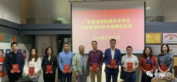 2023年3月11日,中聯泵業(yè)董事長、湖南省五金機電商會會長潘世群先生被聘任為廣東省流體機械技術學會專家?guī)斓谒呐夹g專家。