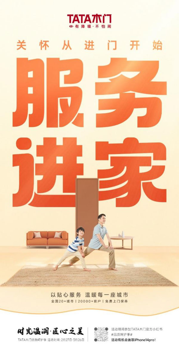 與此同時,TATA木門延續(xù)了往年的服務月活動,特別為全國20多座城市,20000多位用戶提供免費上門保養(yǎng)服務,用實際行動傳遞著品牌的溫度。除此之外,為回饋新老用戶,TATA木門推出木門放心購活動,以超值的價格全新讓利于消費者,打通全平臺銷售通道,讓消費者能夠以最值的價格獲得最優(yōu)質(zhì)的品質(zhì)和服務。