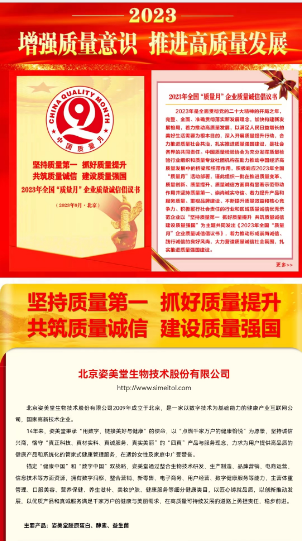 全國“質(zhì)量月”|姿美堂被授予“全國質(zhì)量誠信標桿企業(yè)”四項殊榮姿美堂連續(xù)兩年榮獲全國質(zhì)量誠信標桿企業(yè)