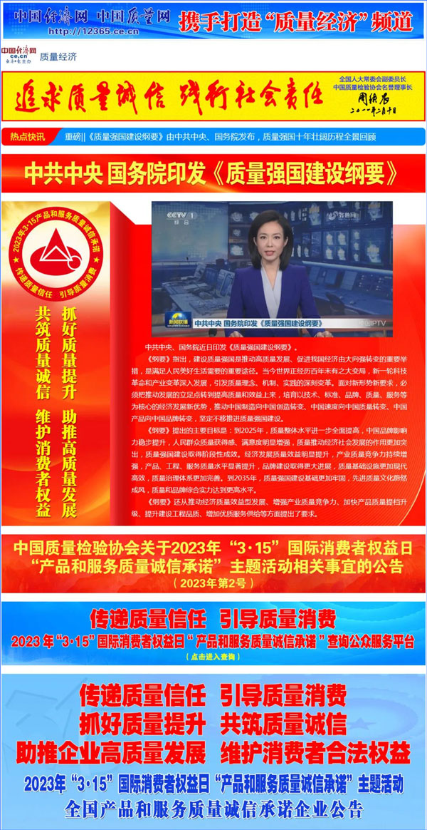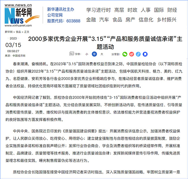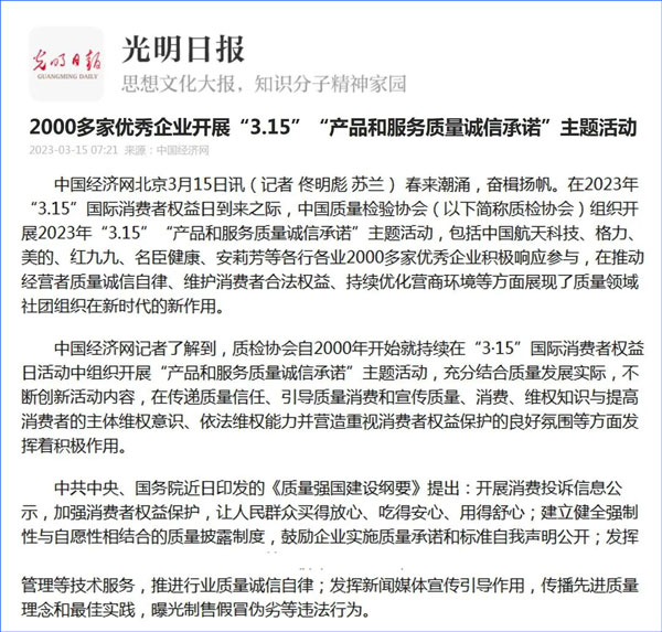 中國經(jīng)濟網(wǎng):2000多家優(yōu)秀企業(yè)開展“3·15”“產(chǎn)品和服務(wù)質(zhì)量誠信承諾”主題活動