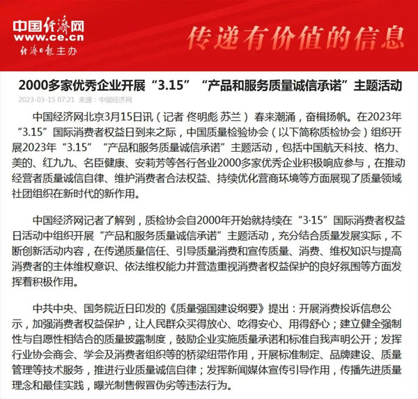 ——中國質(zhì)量檢驗協(xié)會組織2000多家優(yōu)秀典范企業(yè)開展“3.15”產(chǎn)品和服務(wù)質(zhì)量誠信承諾活動