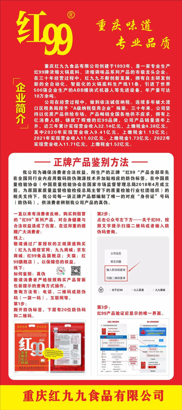 在剛剛閉幕的全國兩會上,政府工作報告明確指出,要著力擴大國內(nèi)需求,把恢復和擴大消費擺在優(yōu)先位置。作為質(zhì)檢協(xié)會會員企業(yè),我國重慶麻辣火鍋復合調(diào)料行業(yè)領(lǐng)軍企業(yè)重慶紅九九食品有限公司董事長黃萬明直言:“高質(zhì)量發(fā)展離不開產(chǎn)品和服務(wù)質(zhì)量的提升,產(chǎn)品和服務(wù)質(zhì)量提升是消費的助推器。消費作為內(nèi)需的重要組成部分,促進居民消費也是實施擴大內(nèi)需戰(zhàn)略的重要抓手。促進消費升級,關(guān)鍵要在供給端的產(chǎn)品和服務(wù)質(zhì)量提升方面去發(fā)力。多年來,在質(zhì)檢協(xié)會的支持下,重慶火鍋底料行業(yè)在發(fā)展中不斷提質(zhì)升級,視質(zhì)量為生命,以高質(zhì)量為追求,不但順應(yīng)了消費者的需求變化,也切實滿足了人民群眾的美好生活需要。”