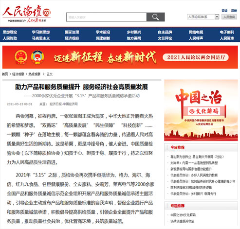人民網(wǎng):2000家質(zhì)量好企業(yè)"3.15"作出誠信承諾
