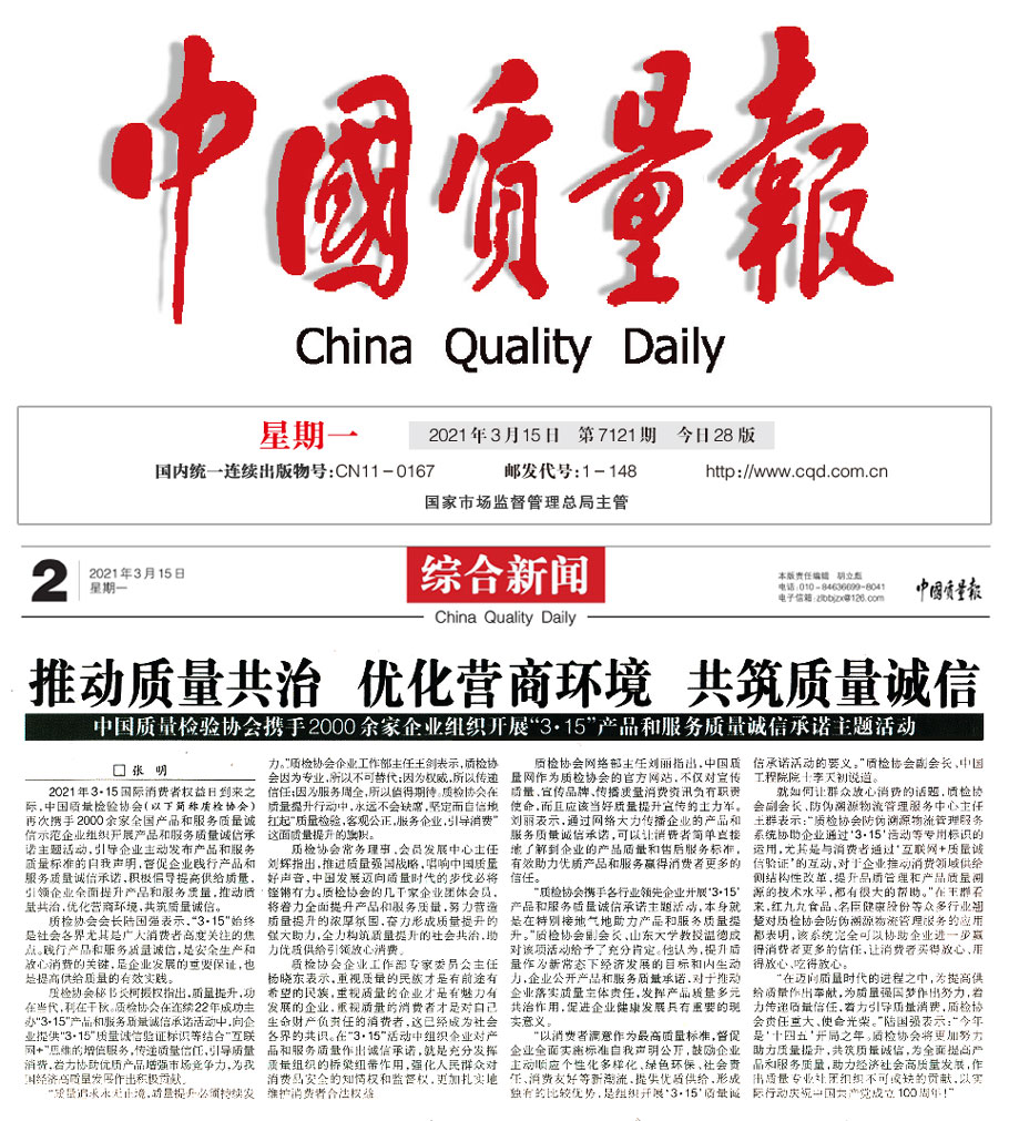 中國質(zhì)量新聞網(wǎng):中國質(zhì)量檢驗協(xié)會攜手2000余家企業(yè)組織開展“3·15”產(chǎn)品和服務(wù)質(zhì)量誠信承諾主題活動
